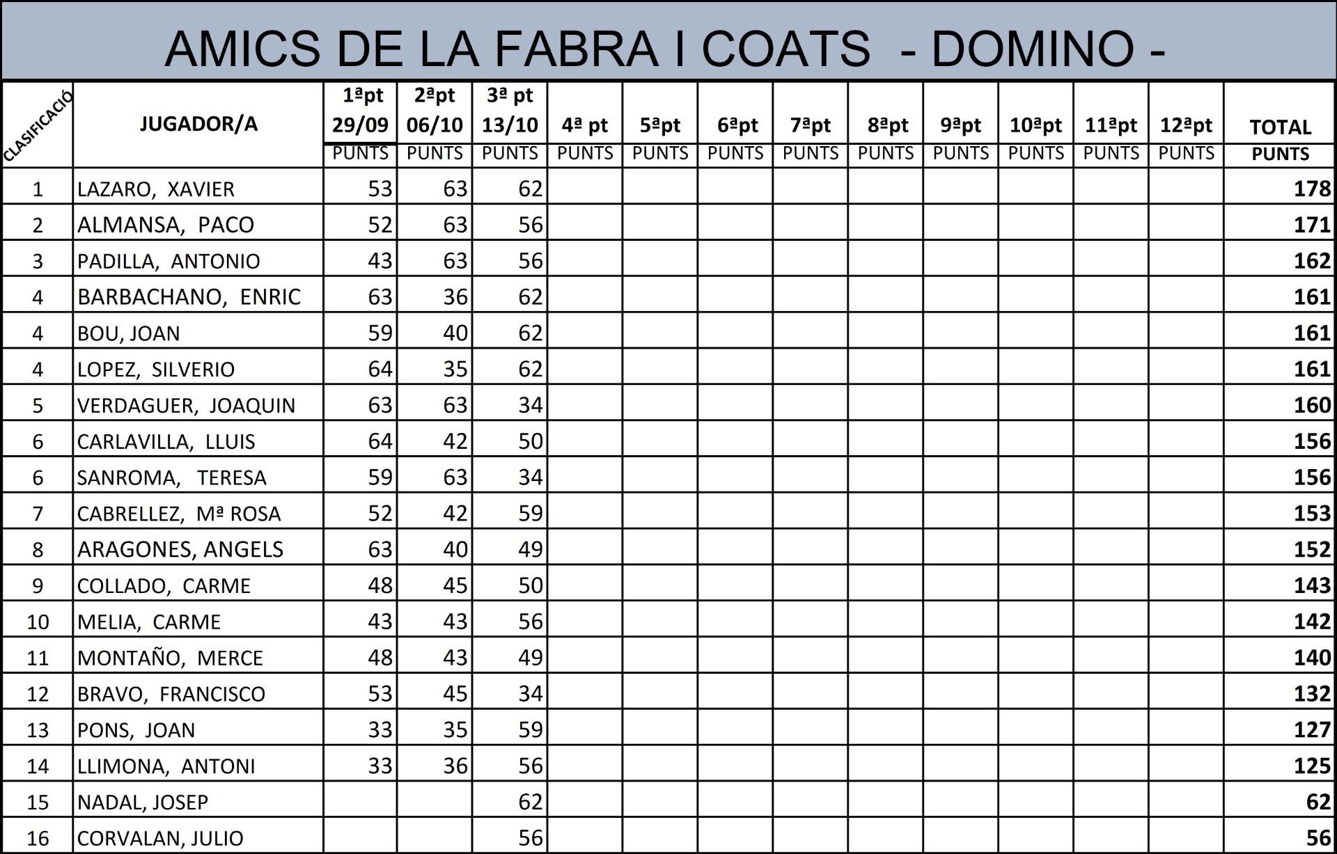 Llistat Final clasificació del 29/09/2025 al 13/10/2025