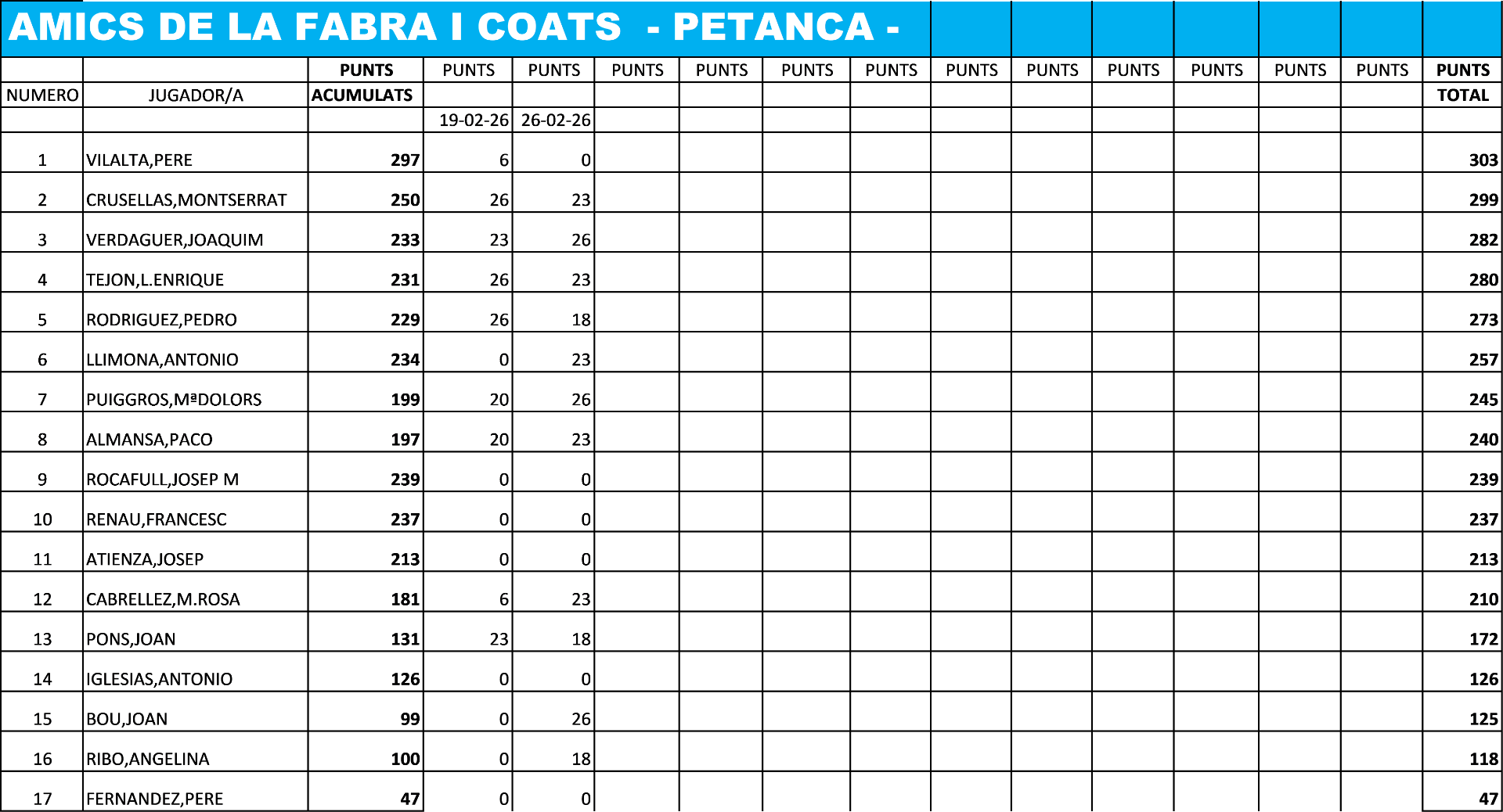 PETANCA - CAMPIONAT SOCIAL 2025-2026