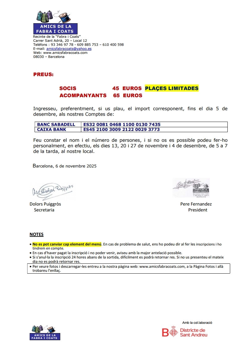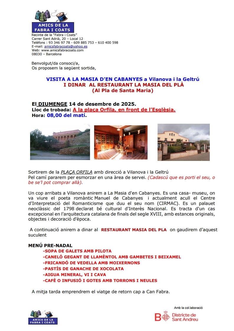 PROPERA EXCURSIO 14 DE DESEMBRE DE 2025
